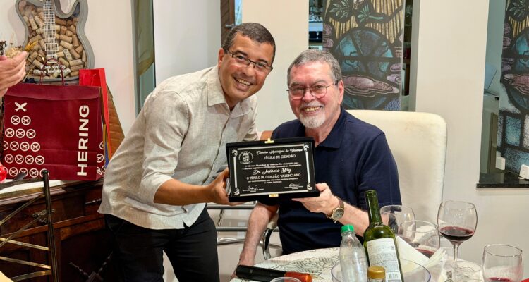 VEREADOR FABRÍCIO LEMOS CONCEDE TÍTULO DE CIDADÃO VALENCIANO AO DR. MÁRCIO BITY Ricardo Lemos 2 de fevereiro de 2026 Notícias, Política O vereador Fabrício Lemos teve a alegria de entregar, o Título de Cidadão Valenciano ao querido Márcio Bity. Uma homenagem mais que merecida a alguém que dedicou anos de sua vida ao cuidado, ao desenvolvimento e ao bem-estar da população de Valença. Dr. Márcio, natural do Rio de Janeiro, atua há muito tempo no município, tornando-se referência pela competência profissional e pelo carinho com que trata cada paciente. Sua história em Valença vai muito além da medicina é marcada por serviços prestados com amor, compromisso e respeito à nossa gente. “Entregar este título ao Dr. Márcio Bity é uma grande honra para mim. Ele escolheu Valença para viver e trabalhar, e hoje retribuímos toda essa dedicação com gratidão e reconhecimento. Este título simboliza o respeito e a admiração que nossa cidade tem por ele.” destacou Fabrício. O reconhecimento reafirma o compromisso do mandato com a valorização de pessoas que ajudam a construir uma Valença melhor para todos. Deixe uma resposta Cancelar resposta Seu endereço de email não será publicado.ComentarNome* Email* Website