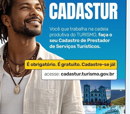 O cadastro é gratuito e pode ser feito de forma totalmente online, por meio do site oficial do Ministério do Turismo: www.cadastur.turismo.gov.br