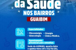 CARAVANA DA SAÚDE CHEGA AO GUAIBIM COM ATENDIMENTO EM DIVERSAS ESPECIALIDADES Ricardo Lemos 1 de outubro de 2025 Notícias, Política A comunidade de Guaibim vai receber, no próximo dia 03 de outubro, às 12h, a Caravana da Saúde nos Bairros, uma iniciativa que leva atendimento médico especializado de forma gratuita à população. A...