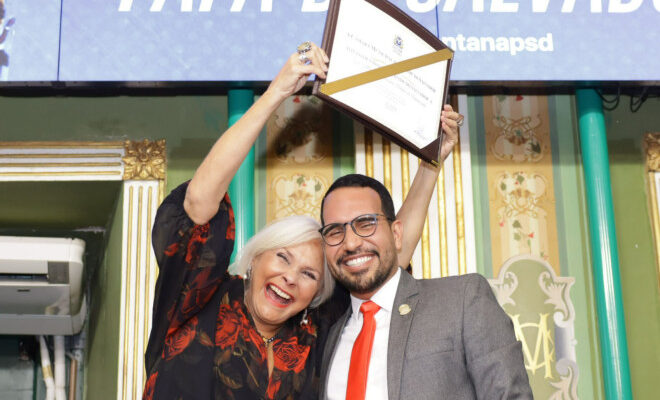 FAFÁ DE BELÉM RECEBE TÍTULO DE CIDADÃ DE SALVADOR Ricardo Lemos 28 de agosto de 2025 Cultura, Notícias Honraria foi entregue pela Câmara Municipal de Salvador em sessão solene, na noite do dia 21, por iniciativa do vereador Felipe Santana Por iniciativa do vereador Felipe Santana (PSD), a cantora Fafá de Belém foi homenageada pela Câmara Municipal com o Título de Cidadã de Salvador. A honraria foi entregue em sessão solene, no Plenário Cosme de Farias. Durante a cerimônia, a artista, natural do Pará, agradeceu pelo reconhecimento e afirmou que renascia com a outorga do título. “Nasci como Fafá de Belém e renasço hoje, aqui dentro, com o amor de todos vocês, me tornando Fafá de Salvador”, declarou. Em seu discurso, Fafá destacou o carinho do público e afirmou ter “nascido” três vezes: a primeira, em 1956, em Belém do Pará, “parida por minha mãe e recebida pelo meu pai, Joaquim Guerreiro”; a segunda, em janeiro de 1975, no palco do Teatro Vila Velha, pelas mãos do produtor Roberto Sant’Anna; e a terceira, agora, com a concessão do Título de Cidadã de Salvador. Sobre o início da carreira na Bahia, lembrou: “O primeiro show que eu fiz na minha vida foi no Teatro Vila Velha. Eu nunca tinha subido no palco. Durante dois anos isso foi discutido, eu não queria ser cantora, nunca pensei em nada disso, e a Bahia já me abraçou”. A cantora também recordou memórias afetivas ligadas ao estado. “Acho que a coisa mais avassaladora foi quando eu desci do aeroporto e passei pelo bambuzal. Aquilo é inesquecível, e toda vez que passo por ali considero que estou entrando em um portal. Um portal de felicidade, alegria, colorido, axé e muito carinho”, relatou. Diretas Já– O vereador Felipe Santana destacou que decidiu homenagear Fafá pelo que ela representa para Salvador e para a democracia brasileira, citando sua influência no movimento Diretas Já. “Fafá de Belém começou sua carreira aqui em Salvador, no Teatro Vila Velha, e este ano comemora 50 anos de trajetória. Além de ser uma grande artista, é uma mulher guerreira que venceu na vida como profissional e teve um papel fundamental também na democracia brasileira”, afirmou. Ele acrescentou: “Fafá foi uma das vozes que inspiraram a luta pelas Diretas Já. Em tempos de democracia ameaçada, quando alguns tentam colocá-la em xeque, é fundamental reafirmar: o Brasil é um país democrático. Viva a democracia, viva Fafá de Belém, viva seus 50 anos de carreira”. A jornalista Rita Batista também prestigiou a solenidade e ressaltou a importância da artista: “Fafá de Belém já é patrimônio soteropolitano e patrimônio baiano”. As vereadoras Marta Rodrigues (PT) e Aladilce Souza (PCdoB) participaram da sessão solene. Via www.comunicarmais.com.br/Foto by Antonio Queiros Deixe uma resposta Cancelar resposta Seu endereço de email não será publicado.ComentarNome* Email* Website