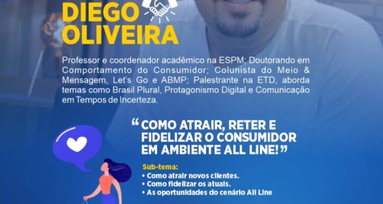 O encontro acontece no Auditório da Casa do Empresário de Valença e será ministrado por Diego Oliveira, professor e coordenador acadêmico na ESPM, doutorando em Comportamento do Consumidor, colunista do Meio & Mensagem, Let’s Go e ABMP, e palestrante reconhecido por suas abordagens sobre Brasil Plural, protagonismo digital e comunicação em tempos de incerteza.