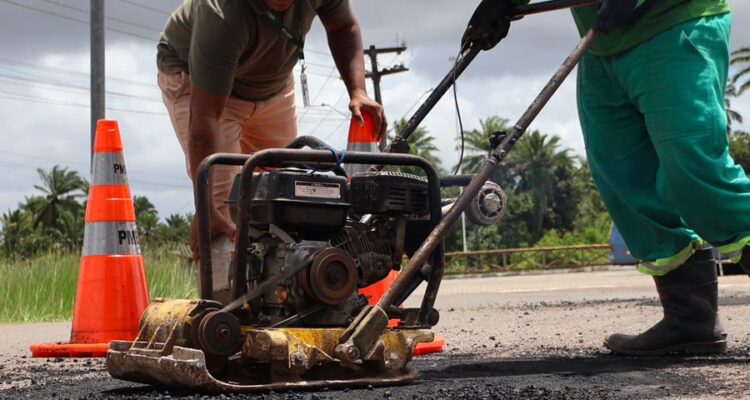 PREFEITURA DE VALENÇA GARANTE MAIS SEGURANÇA E MOBILIDADE NAS VIAS QUE CONECTAM VALENÇA AO GUAIBIM E ATRACADOURO Ricardo Lemos 29 de outubro de 2025 Notícias, Política A Prefeitura de Valença segue avançando com ações de melhoria na infraestrutura viária do município. Com recursos próprios, a gestão está executando a Operação Tapa-Buracos nas rodovias BA-887, que liga Valença ao distrito de Guaibim, e BA-885, que dá acesso ao Atracadouro. A iniciativa tem como objetivo garantir mais segurança e conforto a motoristas, pedestres e turistas que circulam diariamente por essas importantes vias. Os serviços incluem a remoção do asfalto danificado, limpeza e varrição da área afetada, além da aplicação de asfalto a frio e compactação com placa vibratória, o que assegura maior durabilidade e qualidade ao pavimento. “Estamos trabalhando com planejamento e responsabilidade para manter as vias em boas condições de uso. Essa intervenção é fundamental para reduzir riscos de acidentes, melhorar o fluxo de veículos e fortalecer o acesso a importantes áreas turísticas e comerciais de Valença”, destacou o secretário de Infraestrutura, Alan Ainsworth. SECOM | Prefeitura Municipal de Valença Deixe uma resposta Cancelar resposta Seu endereço de email não será publicado.ComentarNome* Email* Website