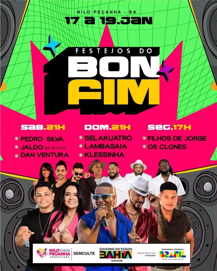 FESTEJOS DO BONFIM DE NILO PEÇANHA COMEÇA HOJE E VAI ATÉ O DIA 19 COM FÉ, TRADIÇÃO E GRANDES ATRAÇÕES MUSICAIS Ricardo Lemos 17 de janeiro de 2026 Cultura, Notícias Nilo Peçanha se prepara para viver mais uma edição dos tradicionais Festejos do Senhor do Bonfim, padroeiro do município. A celebração acontece neste final de semana, de 17 a 19 de janeiro, reunindo fé, cultura popular e uma programação musical diversificada que promete atrair moradores e visitantes de toda a região. Os festejos são um dos momentos mais aguardados do calendário cultural e religioso do município, fortalecendo a identidade do povo nilopeçanhense e mantendo viva uma tradição que atravessa gerações. Além do caráter religioso, o evento também impulsiona a economia local, movimentando o comércio, o turismo e os serviços. A programação musical acontece sempre à noite e está distribuída em três dias: Sábado (17), a partir das 21h: Pedro Silva, Jaldo Sem Retoque e Dan Ventura. Domingo (18), a partir das 21h: Selakuatro, Lambasaia e Klessinha. Segunda-feira (19), a partir das 17h: Filhos de Jorge e Os Clones. Além das atrações artísticas, o ponto alto da programação religiosa acontece no domingo, dia 18, com a Missa Festiva em homenagem ao Senhor do Bonfim, celebrada às 10 horas da manhã, na Igreja do Bonfim, localizada na sede do município. O momento reúne fiéis em um ato de devoção, gratidão e renovação da fé, reforçando o significado espiritual da festa. A programação da segunda-feira (19) também reserva um momento especial de tradição e irreverência. A partir das 13 horas, o tradicional Bloco Amigos do Jegue vai se reunir na Praça do Piquete para sair pelas ruas da cidade, comemorando 61 anos de história, marcados por alegria, cultura popular e forte participação da comunidade, sendo um dos símbolos mais antigos e queridos dos festejos. Um evento com total apoio da Prefeitura Municipal. A Prefeitura de Nilo Peçanha, em parceria com o Governo do Estado da Bahia e o Governo Federal, convida toda a população e visitantes para participarem desse grande encontro que une religiosidade, cultura e alegria. Os Festejos do Bonfim reafirmam o compromisso de valorizar as tradições, fortalecer a cultura popular e celebrar a fé que faz parte da história e da identidade de Nilo Peçanha. Ascom PM Nilo Peçanha Deixe uma resposta Cancelar resposta Seu endereço de email não será publicado.ComentarNome* Email* Website